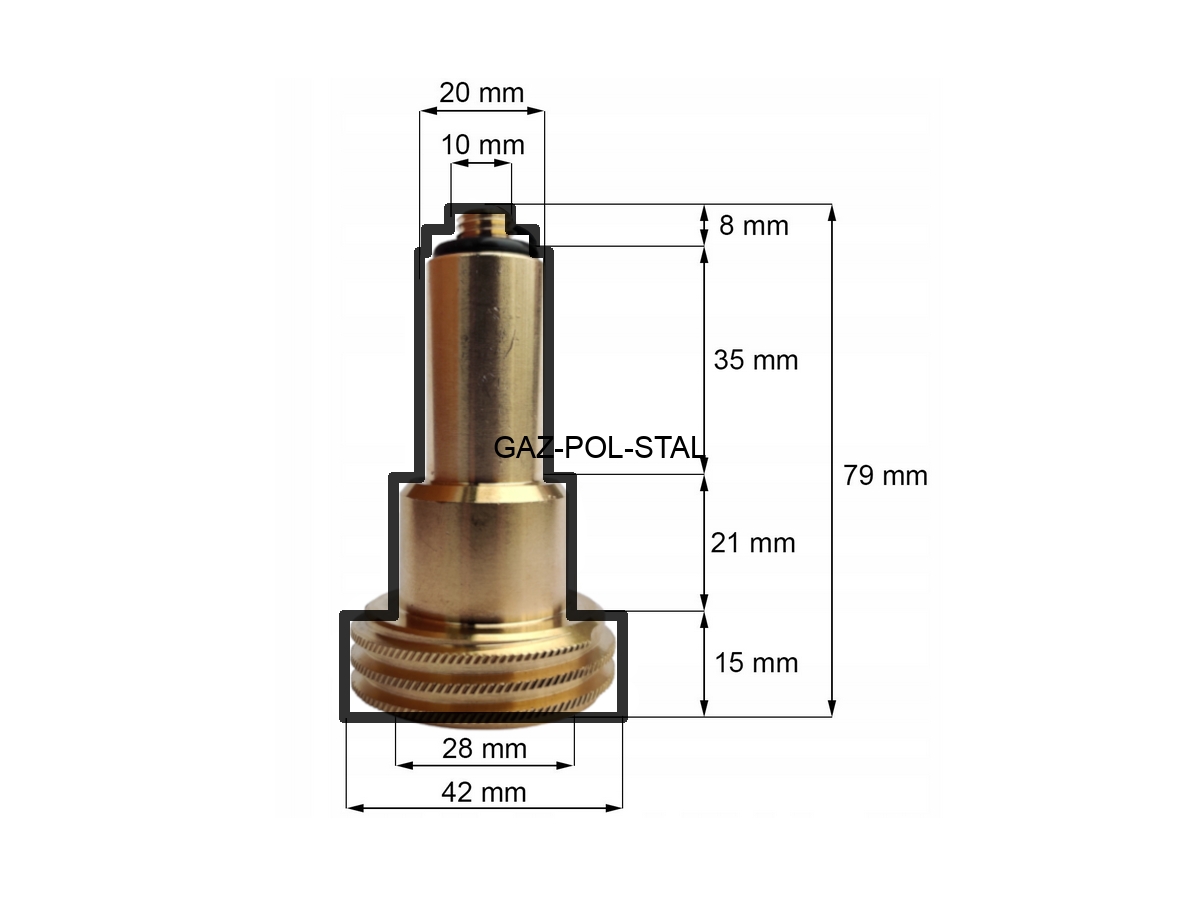 Przejściówka jest elementem toczonym ze stopu miedzi, dzięki czemu swą jakością znacznie przewyższa elementy odlewane, w których bardzo często wyłamaniu ulega gwint, który wkręcamy do zaworu tankowania. Przejściówka posiada trwałą uszczelkę zabezpieczającą szczelność gniazda zaworu tankowania oraz pistoletu dystrybutora gazu LPG.
